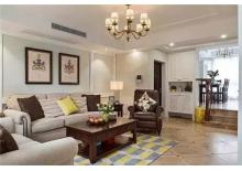 面積:146平 風格:美式風格 玄關(guān) 在入戶門處簡單地設(shè)計了一個嵌入式鞋柜,擺上一個黃色圓柱形小凳,出門或回家時換鞋都很方便。 客廳 客廳的硬裝設(shè)計簡約勾勒出非常清晰的線條,布藝和皮質(zhì)沙發(fā)也彰顯出大氣范...