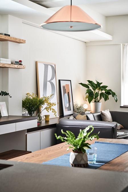 設計師希望能讓使用者一進門就感受到回到家的舒適氣氛。會客區(qū)創(chuàng)造了足夠的空間可以接待家人、朋友,將功能、質感,與美好的環(huán)境氛圍完美融合。