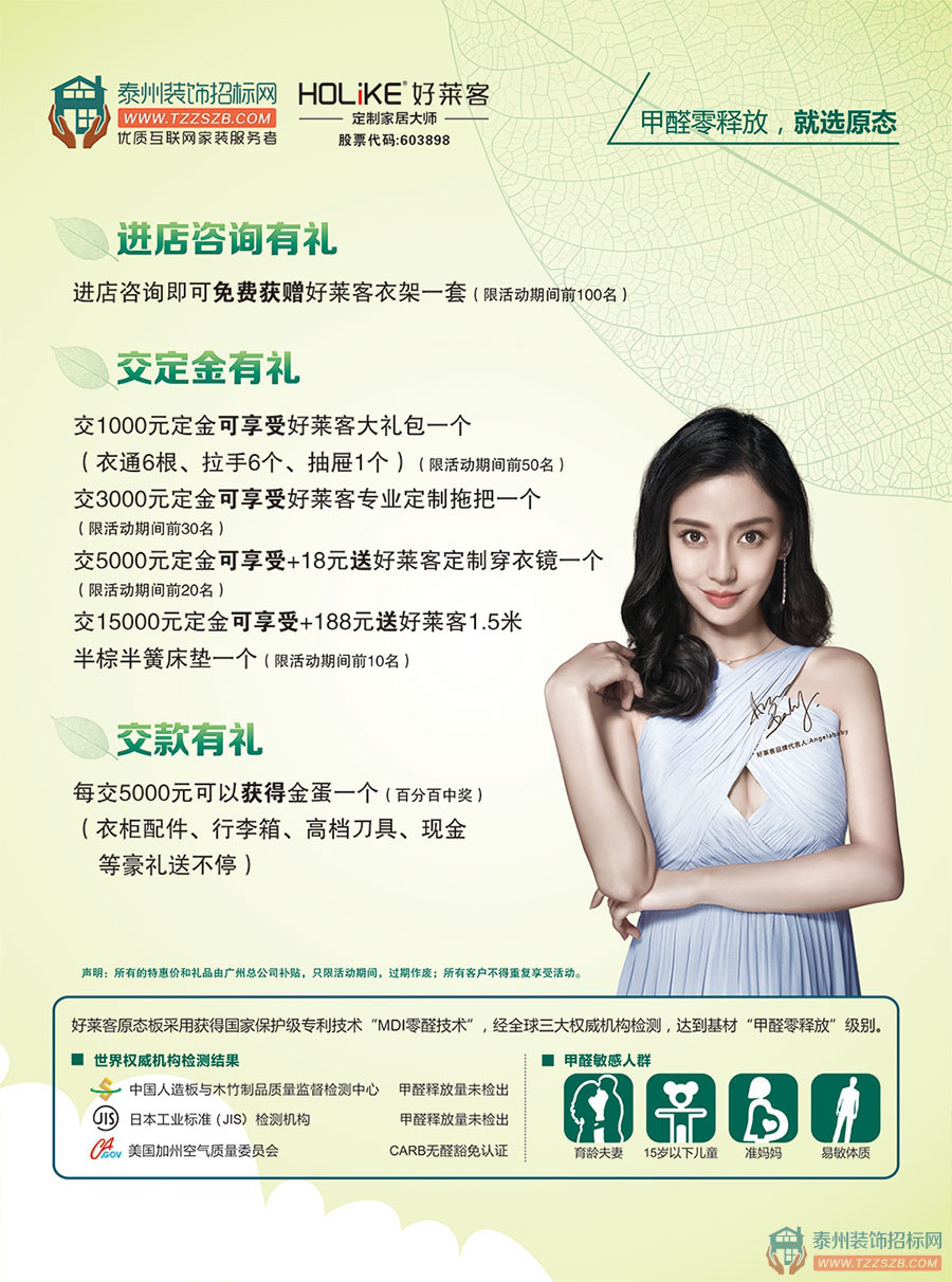 交5000元定金可享受+18元送好萊客定制穿衣鏡一個(限活動期間前20名)