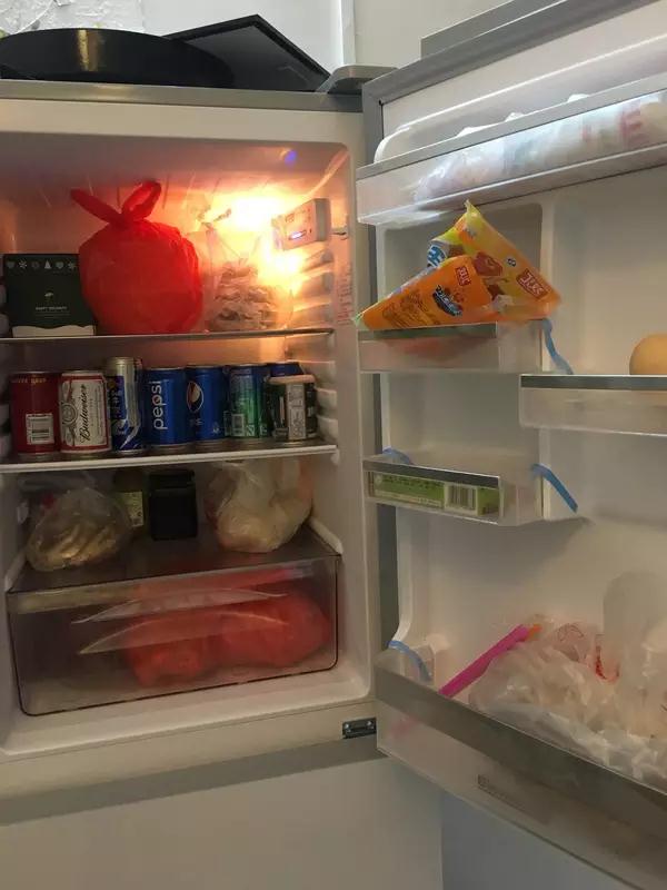 冰箱里都是吃的。特意買了個(gè)大點(diǎn)兒的冰箱,嘿嘿