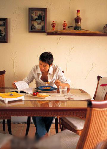 陽臺改成的書房和客廳的沙發(fā)是張茜最愛待的地方,“我喜歡在陽臺那里曬著太陽上網(wǎng),也喜歡窩在沙發(fā)上看碟,不過無論我在哪里,‘帕她呀’都會圍著我轉(zhuǎn)?!?/p>