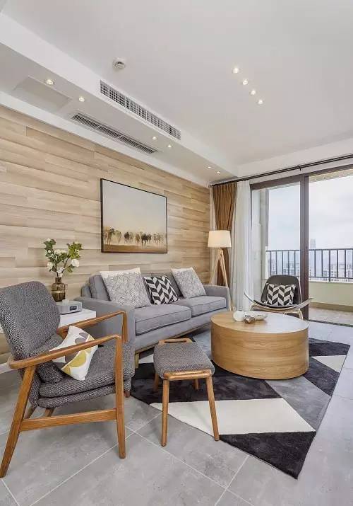 裝修有保障【導(dǎo)讀】▲業(yè)主原本是想日式,結(jié)果更偏北歐, 其實(shí)無(wú)所謂風(fēng)格,自己喜歡覺(jué)得好看好用就行, 客廳是水泥磚鋪地,沙發(fā)背景地板上墻 ▲灰色的布藝沙發(fā),邊上搭配一個(gè)三角落地?zé)?,地板上墻的背景上一幅群馬圖點(diǎn)綴 ▲基本上是黑白灰三色再加 ...