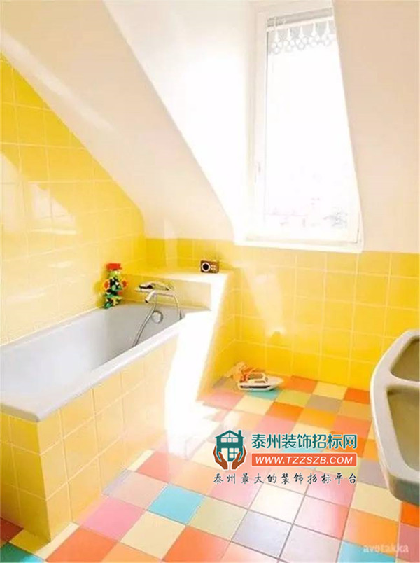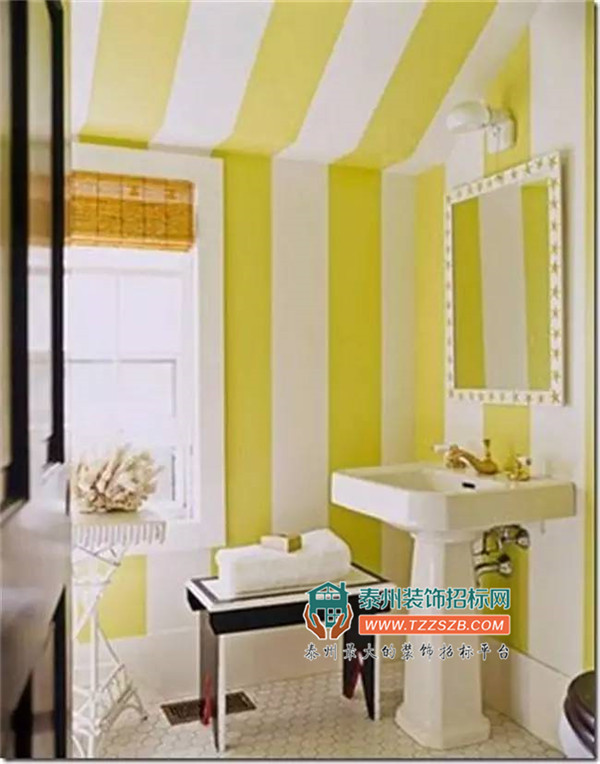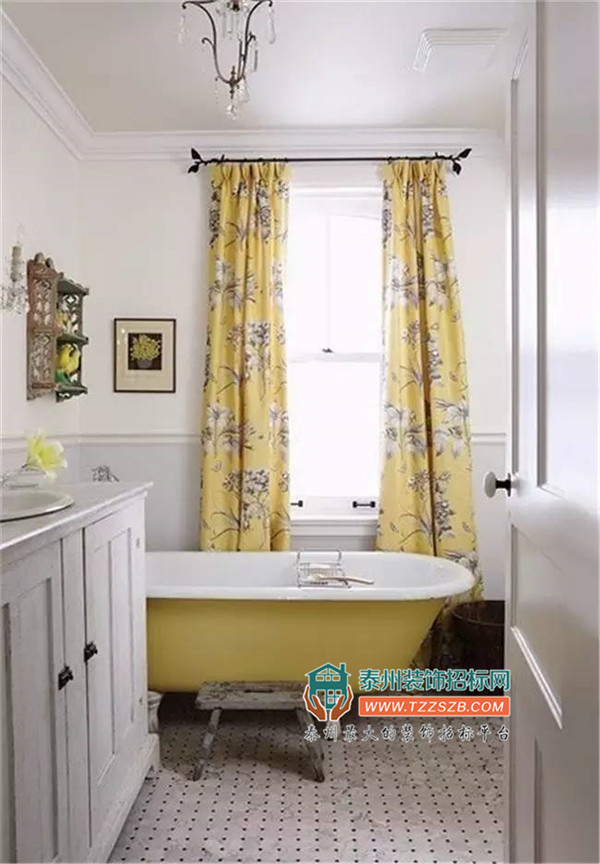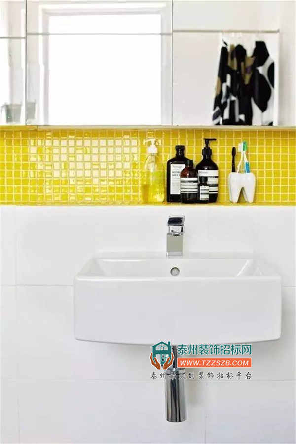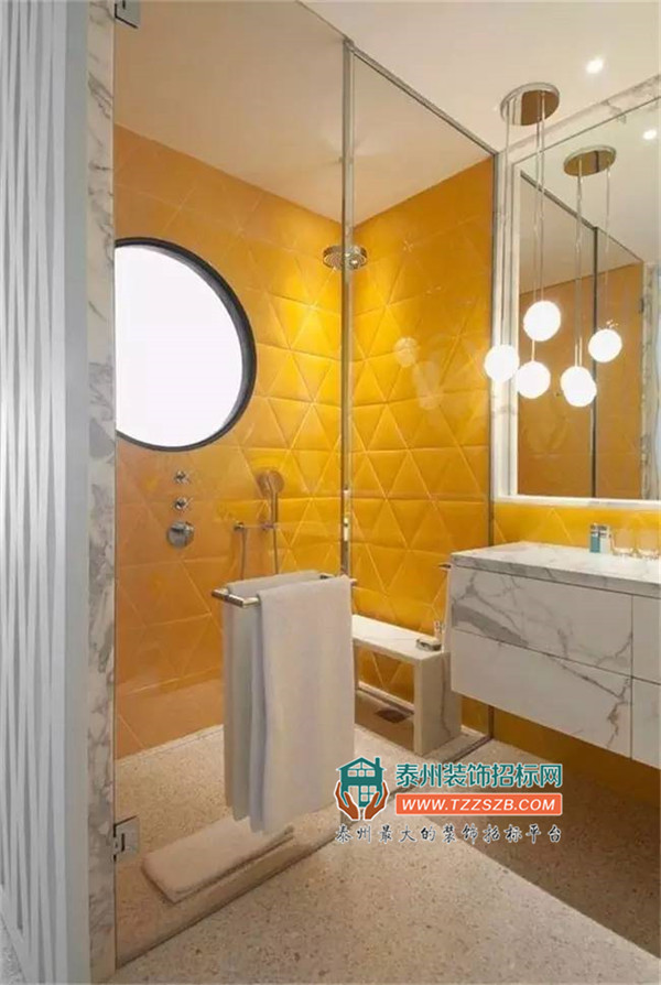 黃色可能不太適合在臥室,但如果你想擁有一個陽光、時尚的浴室,那么非它不可了。你可以大面積在墻壁上使用,也可以小面積的選擇在窗簾、櫥柜、毛巾等等,用來點綴家里的衛(wèi)浴空間。