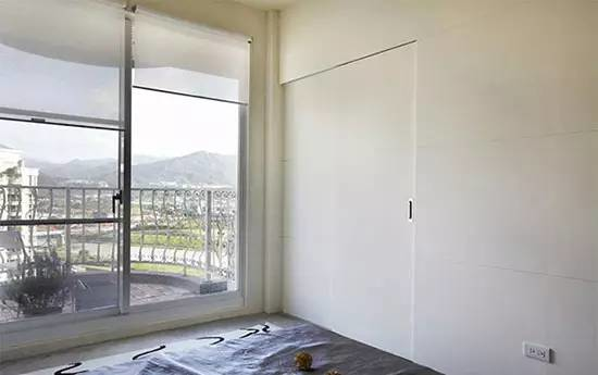 衛(wèi)浴間的門片以隱藏式的推拉門手法設(shè)計(jì),保證外部空間的整體性。