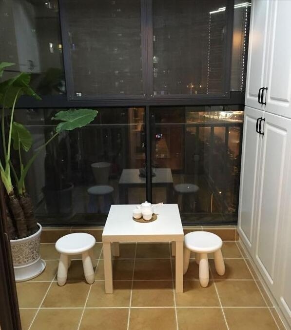 即使做成休閑陽臺,衣服也還是要曬在陽臺的,大柜子也不能少,收納是很重要的。