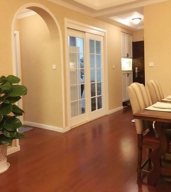 廚房旁邊的門是拱形門,比較有特色,也顯得更溫馨。