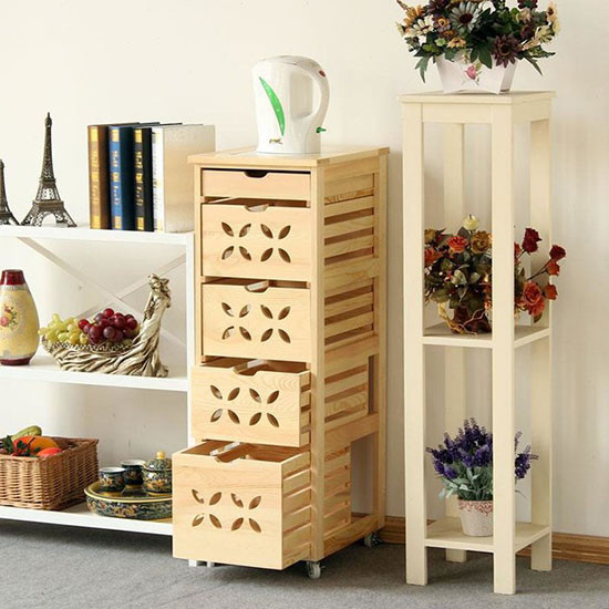 保留了木材原始色彩與紋理的斗柜,簡(jiǎn)約、天然,其外觀在視覺上極具舒適感。抽屜上的鏤空?qǐng)D案使其更顯活潑俏皮。