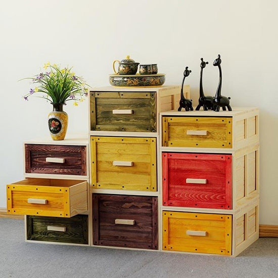 方正、規(guī)矩的斗柜可能會(huì)顯得單調(diào)和枯燥,用幾個(gè)不同尺寸的斗柜組合起來就不會(huì)存在這樣的問題,不同的大小可以滿足對(duì)不同收納容量的需求,鮮艷的色彩也能讓家居空間更加亮眼。