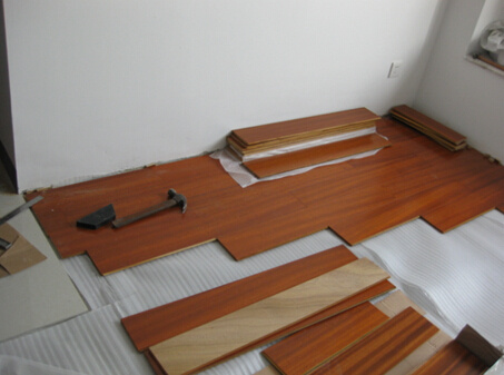 4、再在毛地板上鋪強化地板,參照懸浮式鋪設法鋪裝。