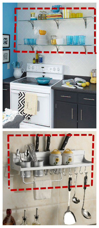 不是所有的東西都得在柜子里才是最好的,我們廚房中常用的調料盒等東西就應該有一個開放式的置物架,方便,美觀兩不誤。