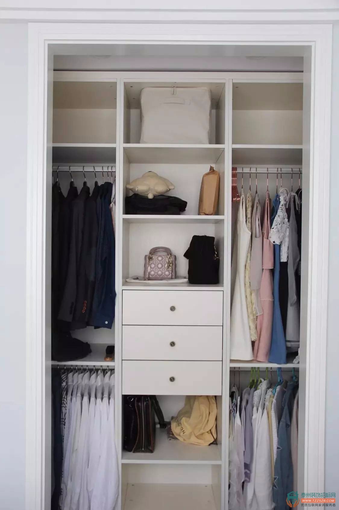 裝修有保障【導(dǎo)讀】衣柜外觀固然重要,內(nèi)部結(jié)構(gòu)才是重中之重,衣柜內(nèi)部結(jié)構(gòu)的設(shè)計,才是真正關(guān)系到日常使用的便利性及收納功能的,今天我們通過一些實際案例,看一看衣柜內(nèi)部到底如何設(shè)計,全是干貨,趕快收藏吧! 一、普通衣柜 一般來說,小編建議普 ...