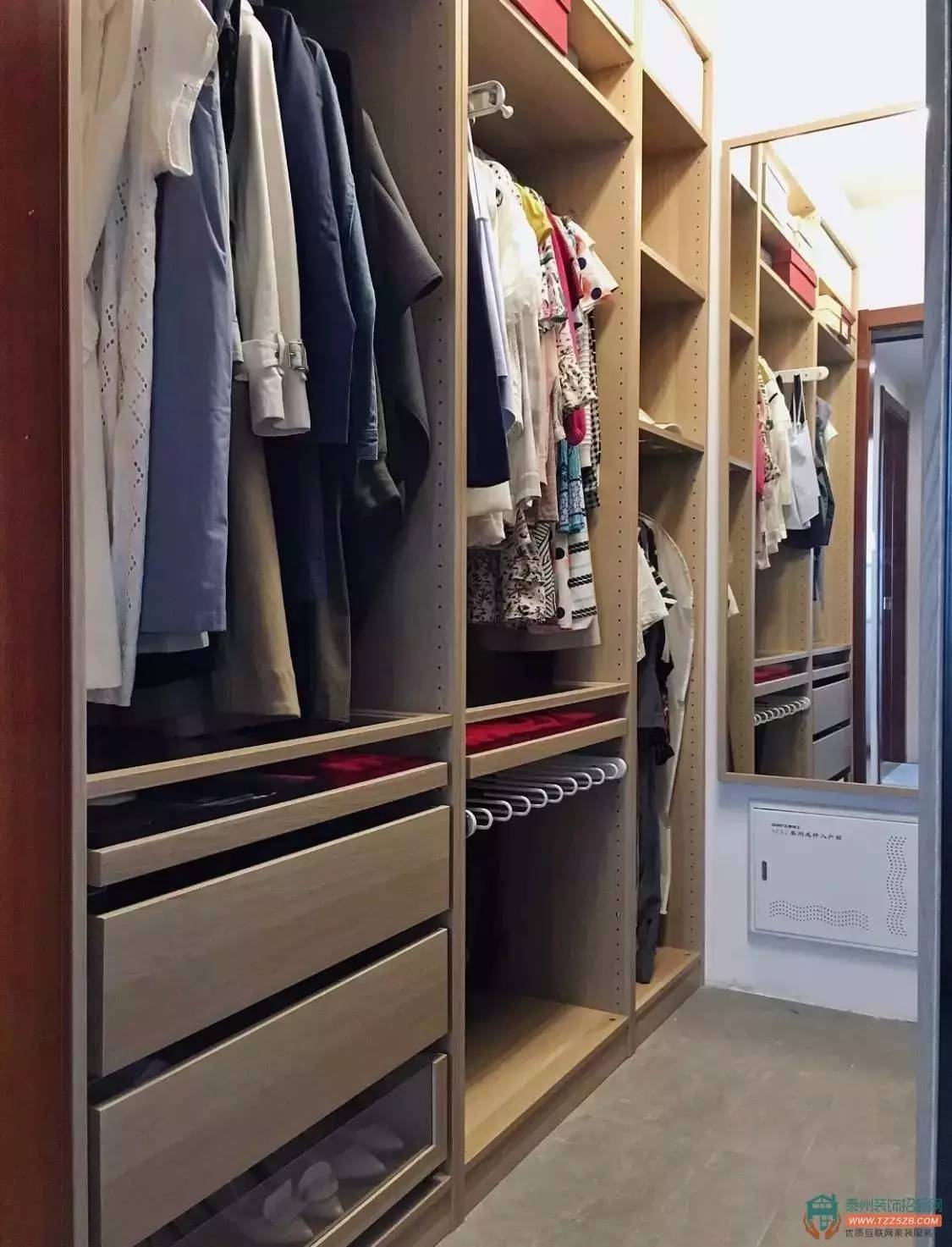在做衣柜,可以在衣柜內(nèi)部安裝抽屜,這樣就可以避免在后期再來增設(shè)收納籃了,而且還可以存放化妝品之類的,也很方便;