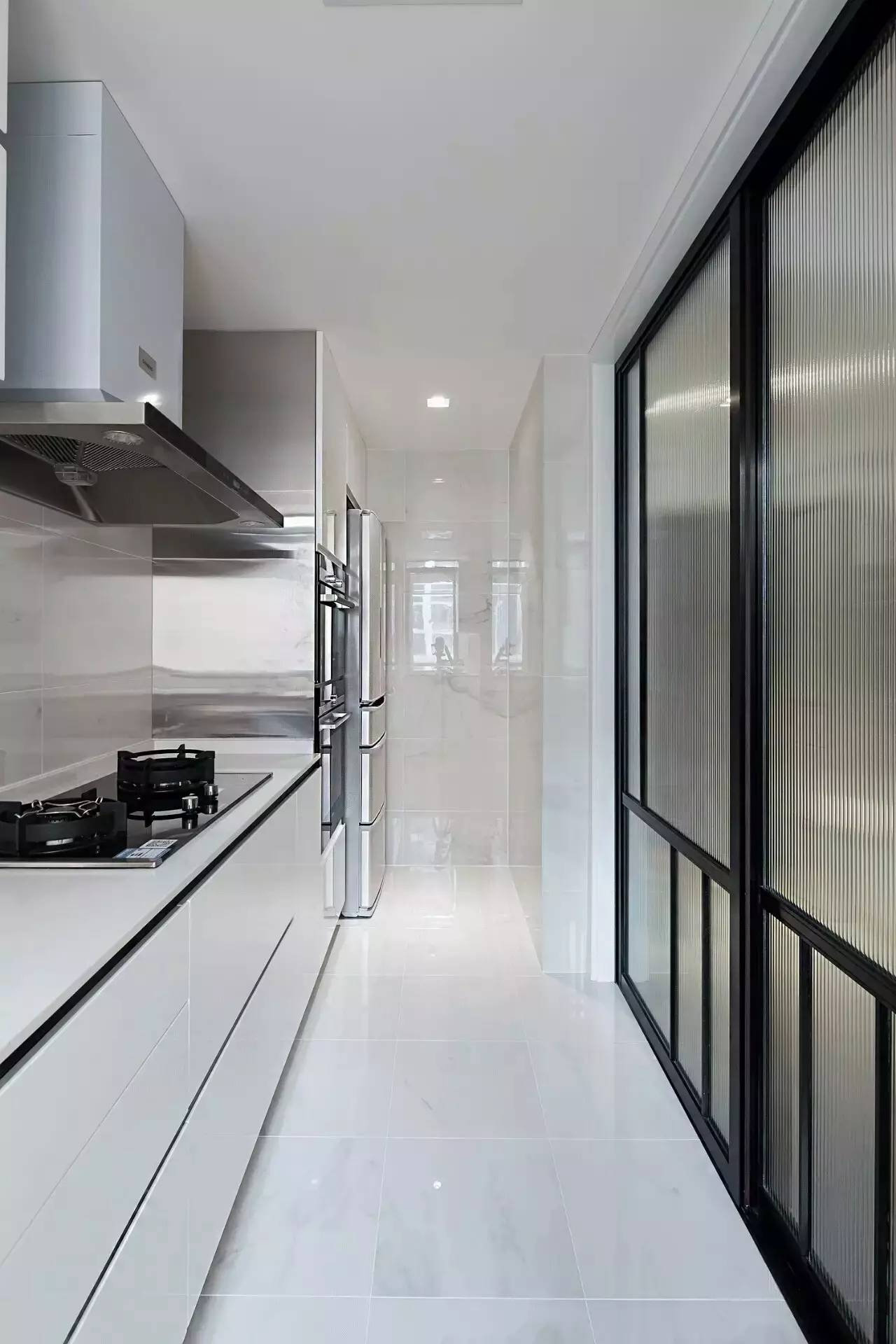 白色的瓷磚敞亮了空間,黑色門框讓廚房看起來更有質(zhì)感。
