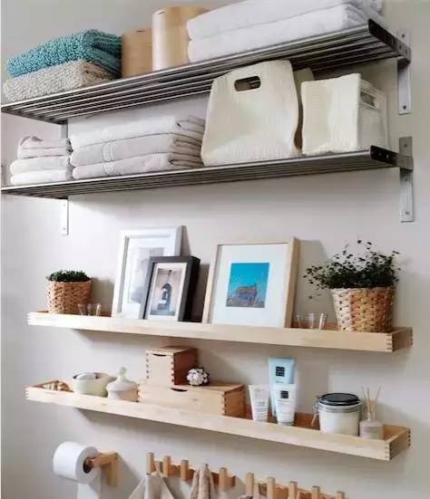 不浪費一寸空間是小戶型的設(shè)計原則,墻壁空間自然也不能放過。墻面上的隔板可以直接做書架或擺放玩具,配合收納盒更顯得排列有序,而廚房、浴室墻上的掛鉤能發(fā)揮大作用,讓毛巾、浴巾、隨手使用的廚具等小件物品整齊劃一。