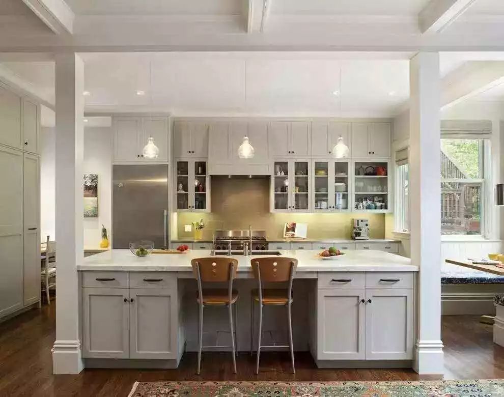 面積不大的廚房,再加上門和隔墻,往往更顯得擁擠,干脆打掉墻體放棄房門,開放式廚房不僅讓小空間顯得通透,更增加了與家人的溝通。
