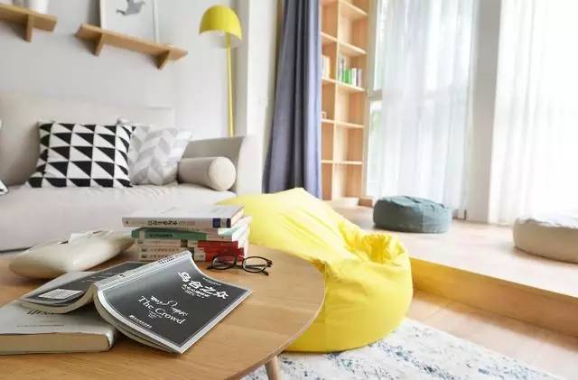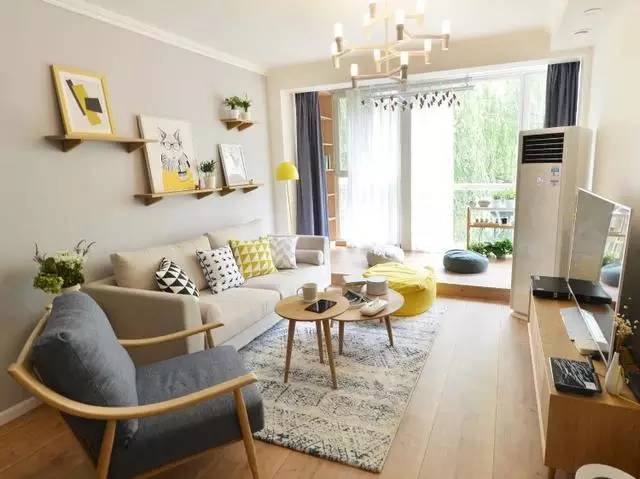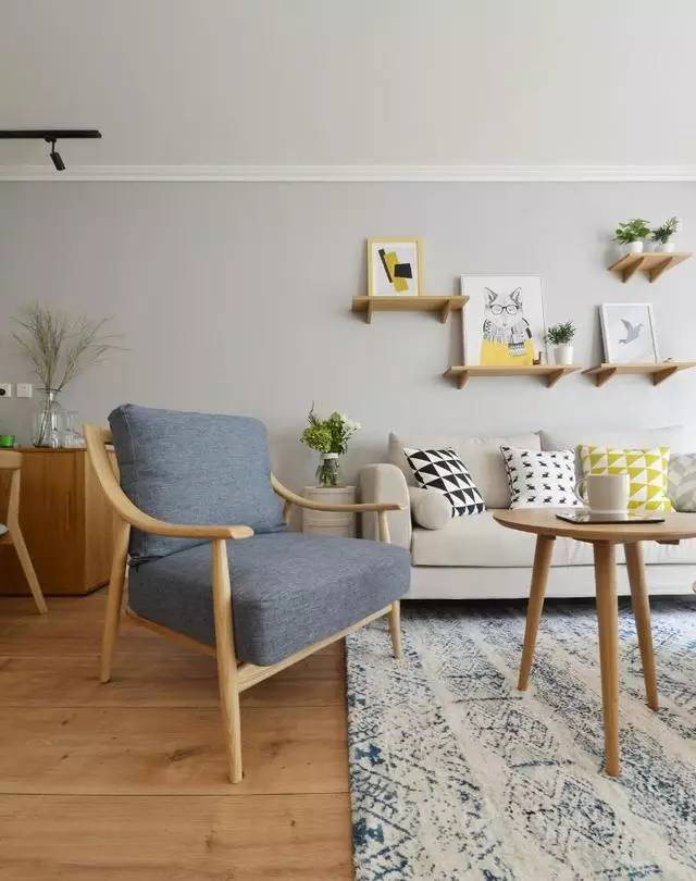 ▲客廳的面積比較小,但五臟俱全啊,買上一個(gè)兩人位的沙發(fā),配上原木色的圓形桌,在鋪上地毯就可以在上面走路了,真美!