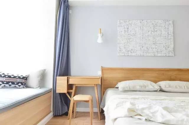 ▲這是臥室的全景圖,業(yè)主很喜歡這個(gè)飄窗,平時(shí)的時(shí)候可以靜下心來在上面看看書,屋子不大,但是滿足二人世界足夠啦!