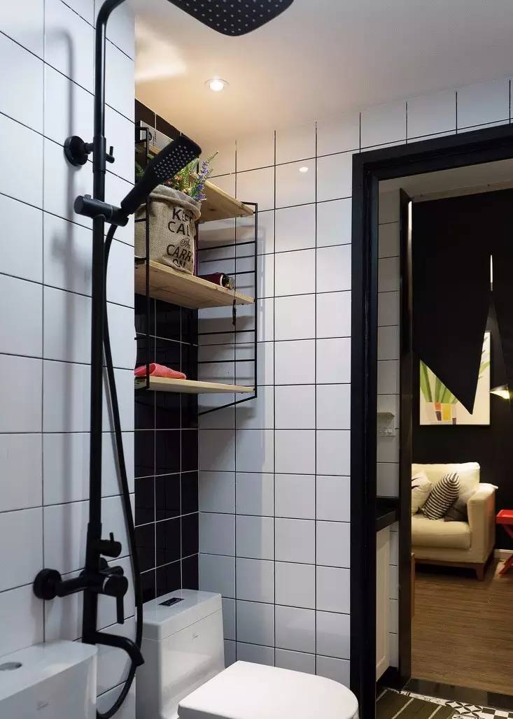 ▲黑白的小方磚充滿了北歐色彩,特意選的黑色淋浴花灑很好的形成對(duì)比,搭配上實(shí)木隔板,好看又實(shí)用。