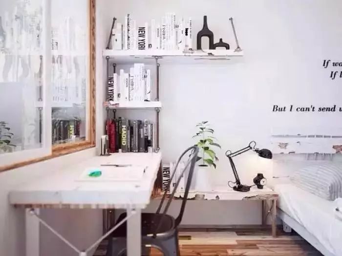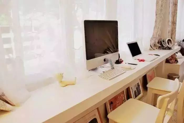 沒有單獨(dú)的書房,可以利用臥室、客廳甚至是陽臺的一個角落,只需要一臺電腦一張好看的桌子,1㎡就能打造一個舒適的工作區(qū)域,非常簡單、方便,還不占用空間。