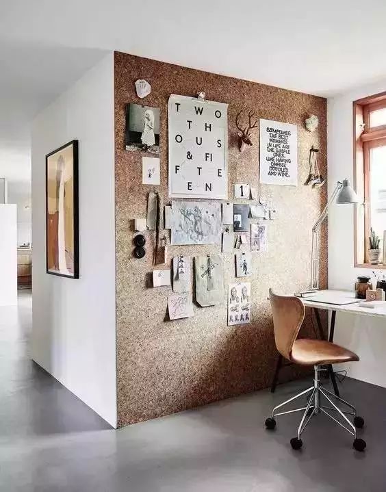 可以利用空墻粘上軟木板或是變身黑板,整面的展示板就在你旁邊。