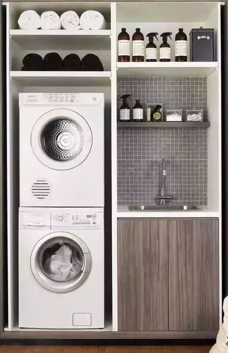 可以利用收納柜,把洗衣機(jī)和其它清潔用品歸置一處,避免出現(xiàn)雜亂。
