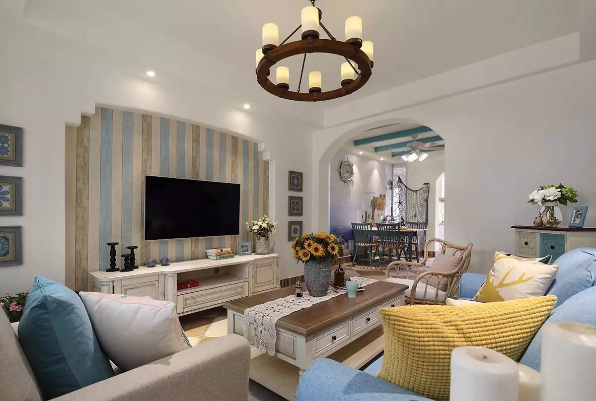 裝修有保障【導(dǎo)讀】【小區(qū)】:中遠(yuǎn)·依云灣 【風(fēng)格】:地中海 【面積】:90平米 【戶型】:兩室兩廳 【造價】:半包8萬 ▲ 淡藍(lán)色的家裝可以讓房屋面積看起來更大。在電視背景墻的裝飾上用了簡單的藍(lán)白豎條紋清爽十足。 ▲ 中老年人最愛的藤 ...
