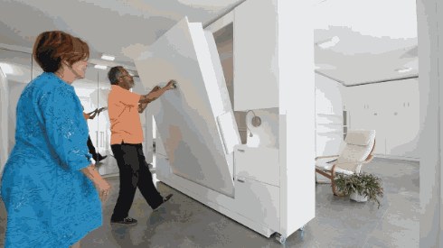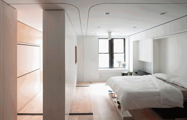 客人來了沒地方住怎么辦?沒關(guān)系,移動(dòng)墻面一房變兩房,是不是像魔術(shù)一般神奇呢?