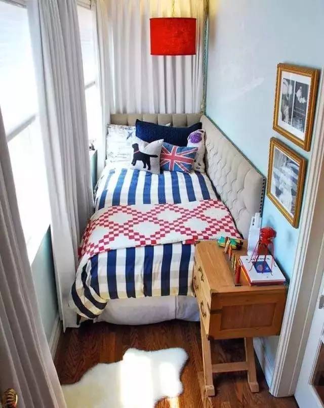 小戶型的出租房,把臥室搬到陽臺也不是不可的,窗簾解決采光強問題,在大城市的房間重要下,這里也是個人的小天地吶。