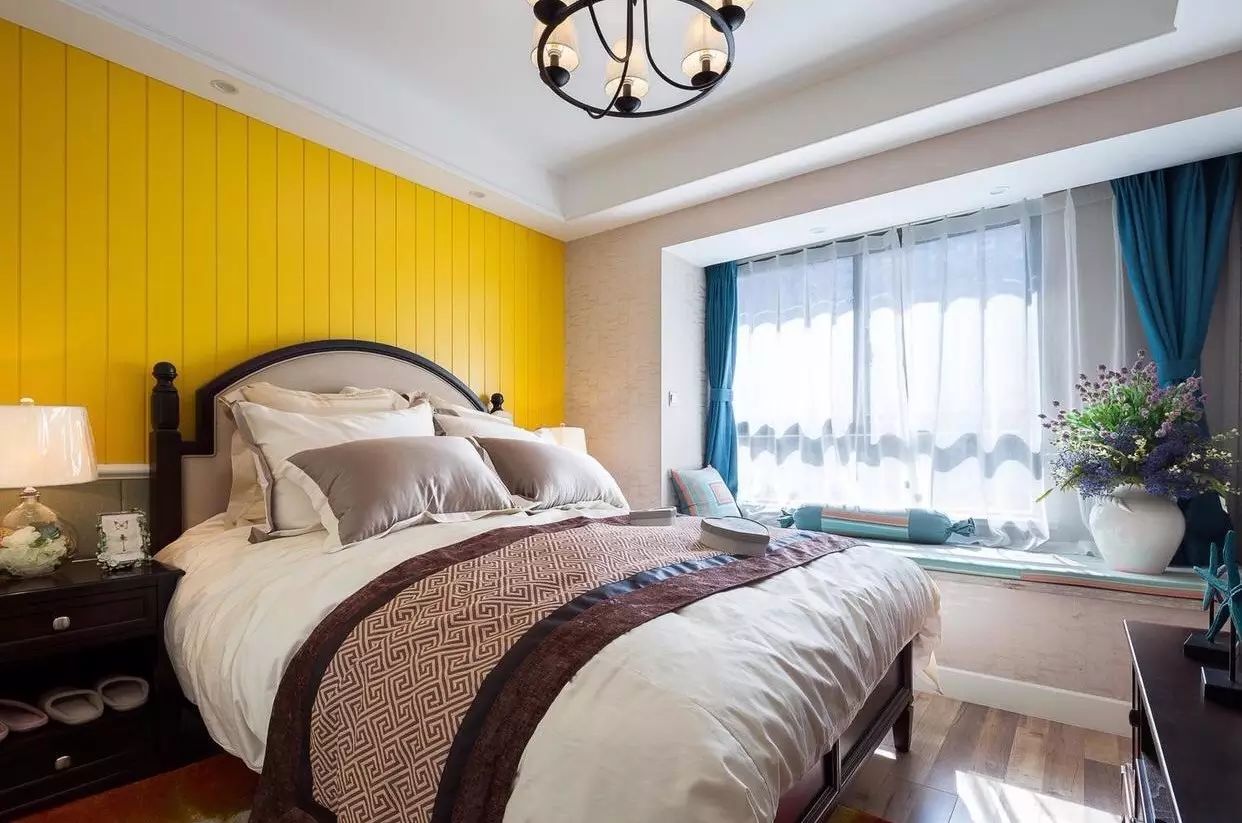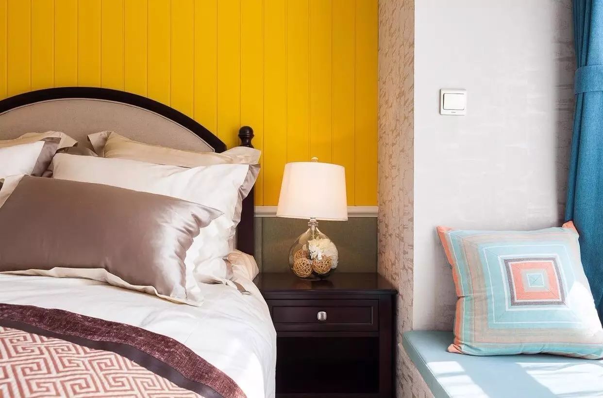 ▲床品用了一些與床頭背景相近的顏色來進行呼應(yīng),飄窗也是簡單做成了一個休閑的小空間,大家可以參考一下。