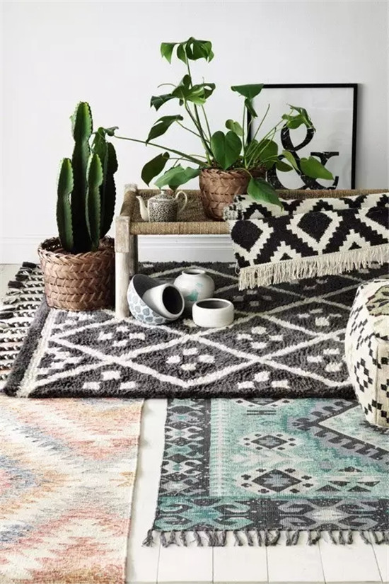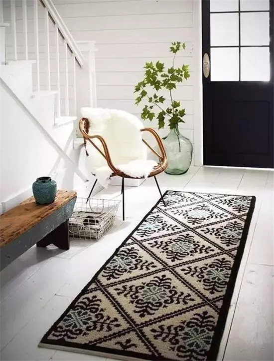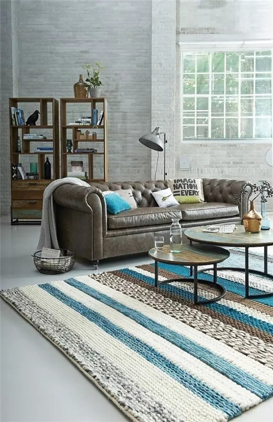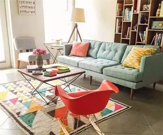 當(dāng)家里不需要大面積使用地毯的時(shí)候,就把地毯當(dāng)做裝飾品,按照選擇點(diǎn)綴色的原則來(lái)就好。
