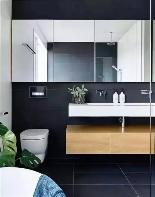 馬桶上方放鏡子除了日常的使用功能,還有擴(kuò)容的功能。鏡子可以反射、折射、增加室內(nèi)的亮度,讓空間在視覺效果上翻倍。
