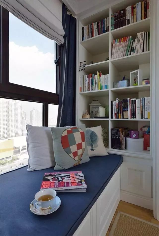 書柜和榻榻米的結(jié)合,在這里看一整天書都不會(huì)累的