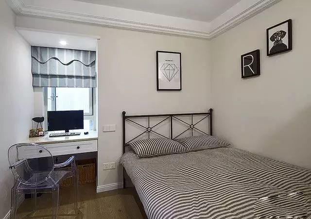 這是臥室,墻壁貼的是墻紙。