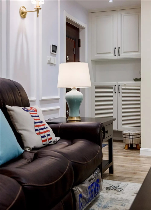一體式衣柜為臥室?guī)砹素S富的收納空間,整個淡藍色調(diào)的空間,搭配出一股淡淡的清爽氣息。