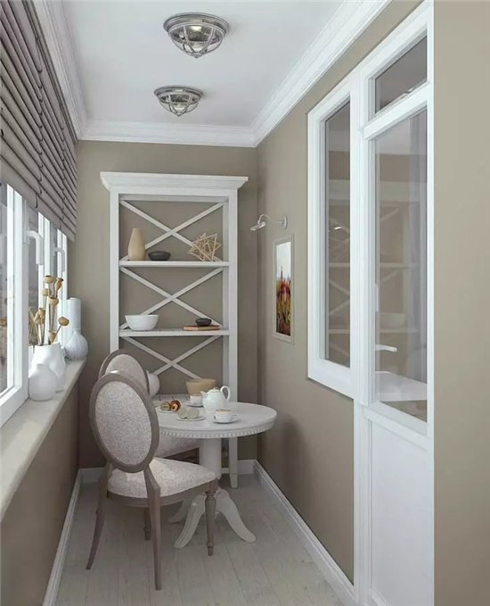 適合喜歡獨立空間,但又不想光線過暗的群體,可以采用單扇門同時在旁邊加一個窗戶,這樣就可以不影響室內(nèi)的光線,也可以在陽臺上有個私密的空間。