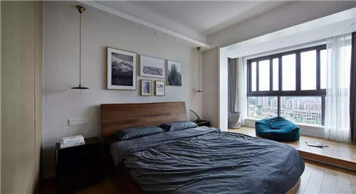 主臥設計依舊采用簡約的風格,營造出舒適的環(huán)境氛圍。在臥室擺放了收納柜,也有休閑榻榻米,還搭配了自然又清新的裝飾畫。