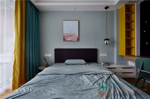 次臥在淺色空間中融入了一些亮麗的色彩,讓屋子顯得特別有活力!書桌正前方設計了一面黑板墻,蠻有創(chuàng)意!