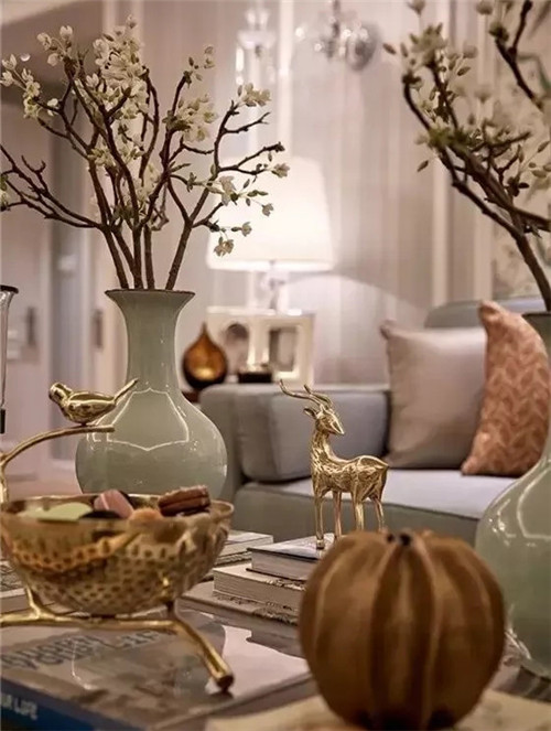 起居室的空間相對開闊,所以在使用花藝或綠植裝飾時,應(yīng)注意多種形式的組合使用。同時,鮮花材質(zhì)與室內(nèi)窗簾布藝等元素要相互呼應(yīng),這樣能給開門迎客帶來不錯的視覺享受。