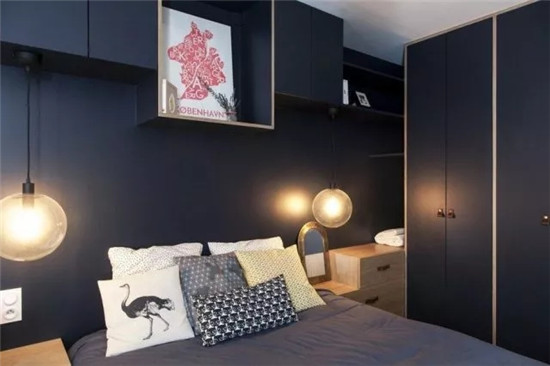 ▲ 臥室利用深色飾面系統(tǒng)柜