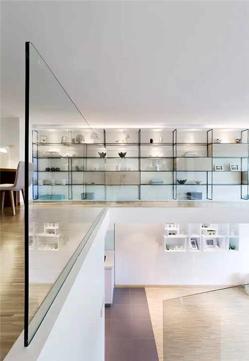 餐廳旁邊的梯子是通往二層空間的,以原木質(zhì)感的樓梯,顯得很高檔,而選擇玻璃護(hù)欄的搭配,更是顯得通透大方;