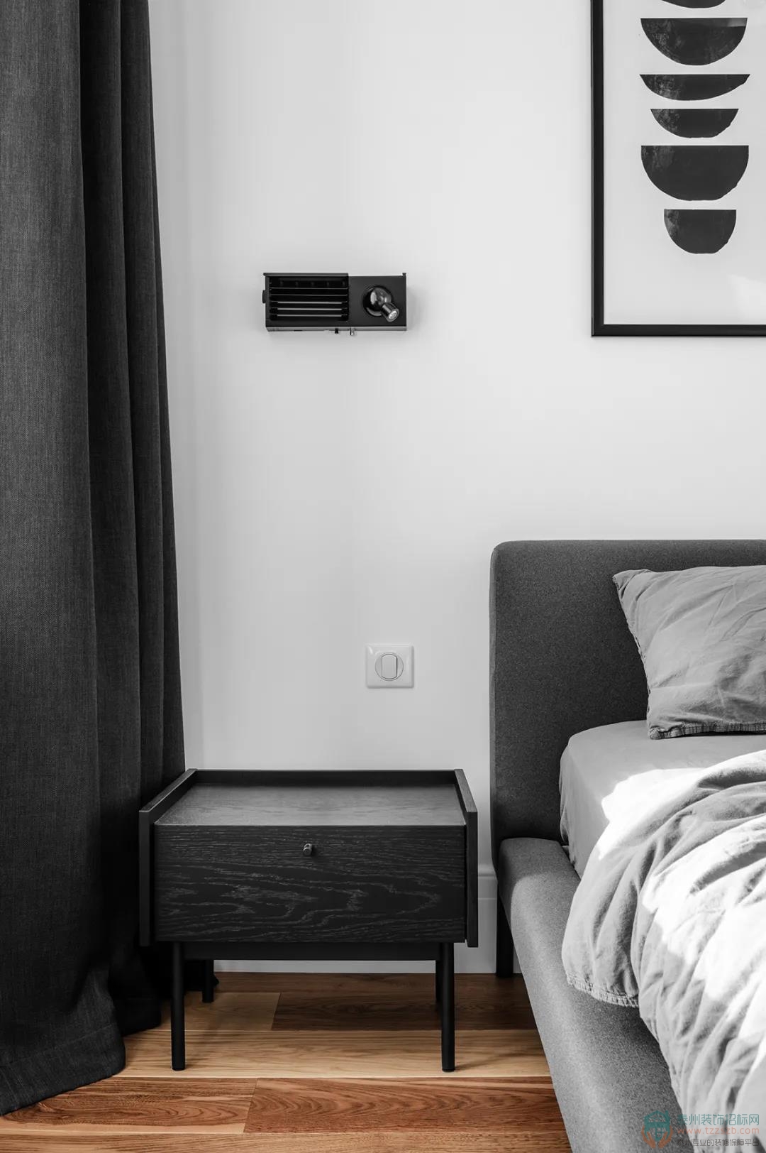 低調(diào)的留白背景墻,進(jìn)一步凸顯造型簡潔利落的家具飾品,形成鮮明對比。