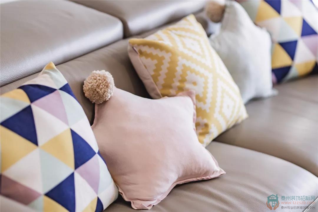 沙發(fā)選擇的是質(zhì)感柔軟的皮質(zhì)沙發(fā),沙發(fā)后面的背景墻掛著三幅掛飾作為點(diǎn)綴。讓整體空間顯得不會(huì)那么突兀。