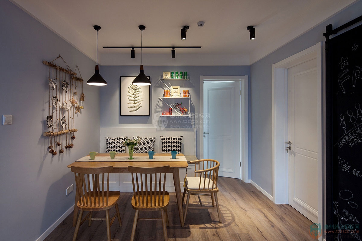 入戶門(mén)的黑板谷倉(cāng)門(mén),可當(dāng)玄關(guān)又是留言涂鴉板,增加空間樂(lè)趣,玄關(guān)利用廚房空間做個(gè)壁柜,次臥陽(yáng)臺(tái)改造成陽(yáng)光圖書(shū)區(qū)溫馨舒適。