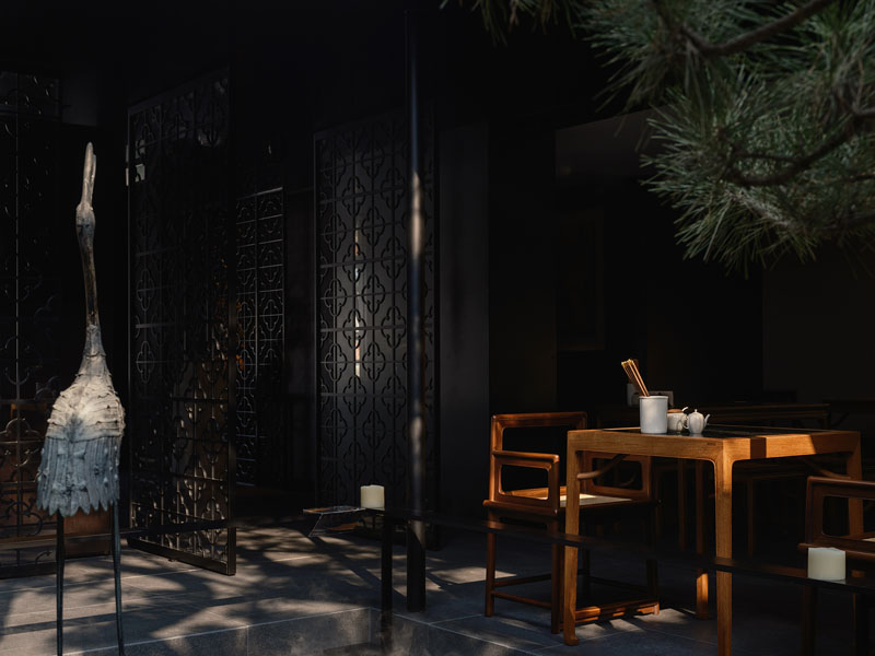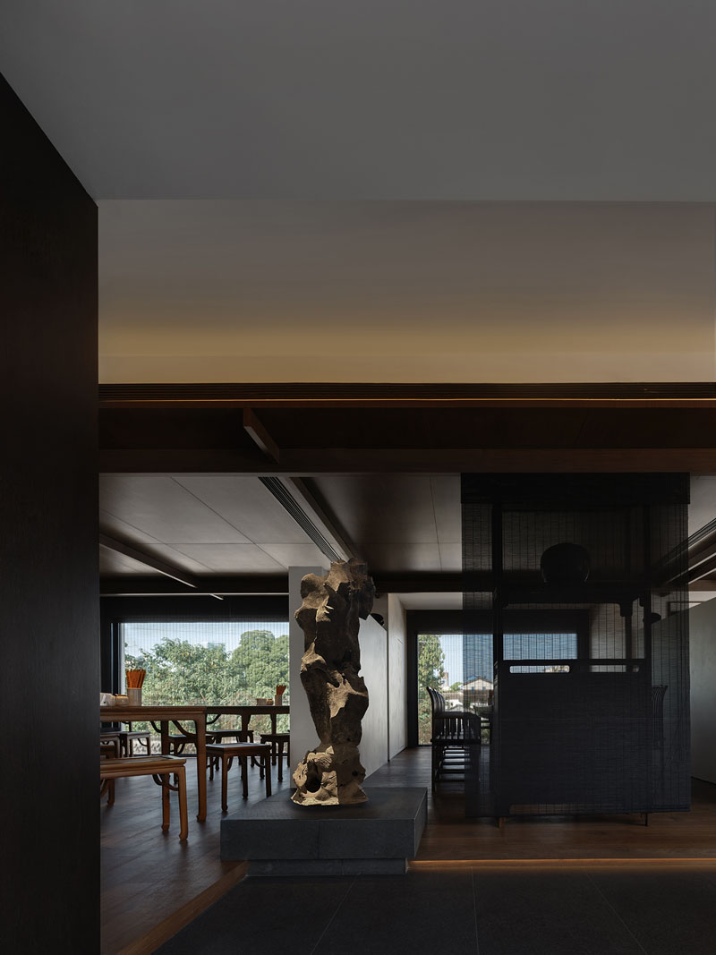 于靜處,暗調(diào)的中式氛圍,不僅營造隱逸寧靜的基調(diào),更凸顯東方的內(nèi)斂含蓄。