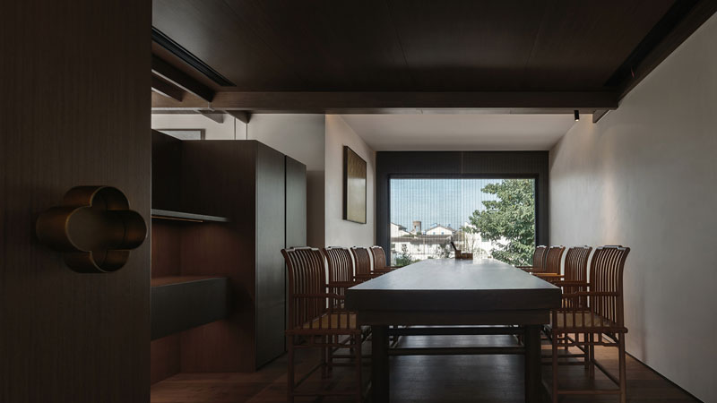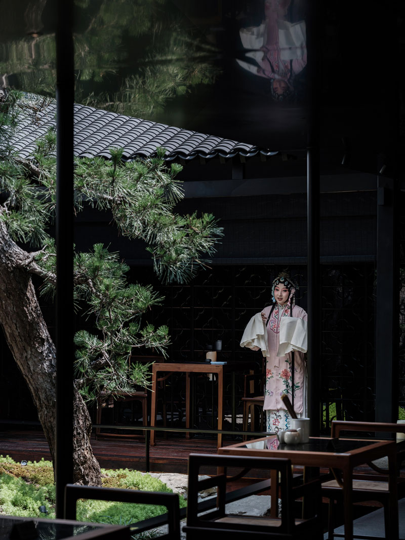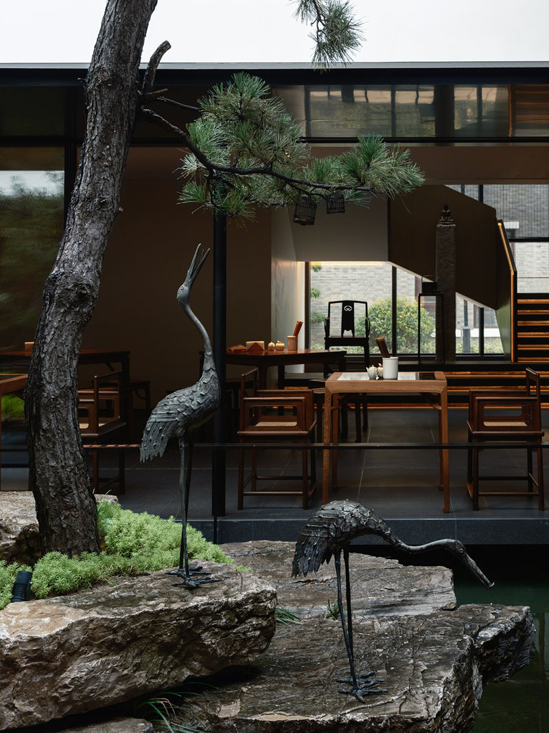 宋代的房梁榫卯結(jié)構(gòu),明代的定制實(shí)木家具,用現(xiàn)代中式留白與置景手法,構(gòu)建了一個(gè)跨越時(shí)空的對話空間。