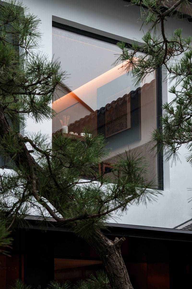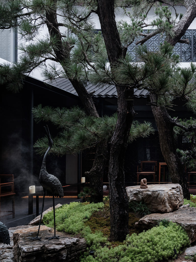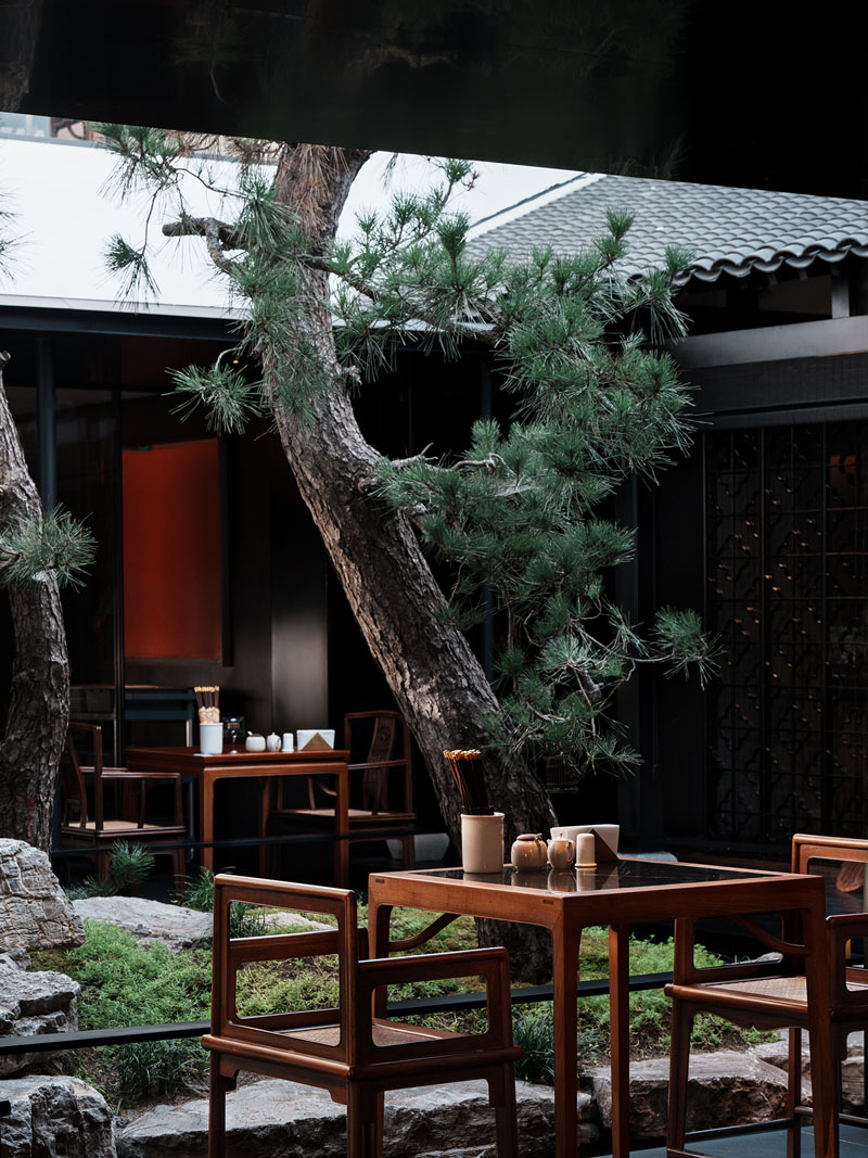 中庭的三棵古松,如同長者溫情地注視著塵世間,迎接和目送每一個(gè)美好的瞬間。
