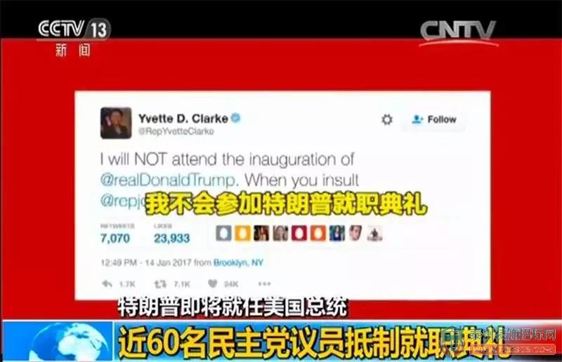 在美國政界,截至目前已有近60位民主黨議員表示拒絕出席特朗普就職典禮,其中不少人表示會在當天參加“反特”游行。佐治亞州民主黨眾議員約翰·劉易斯與特朗普在社交網(wǎng)站上唇槍舌戰(zhàn),隨后多名民主黨議員發(fā)起“和劉易斯站在一起”行動,拒絕參加就職典禮。